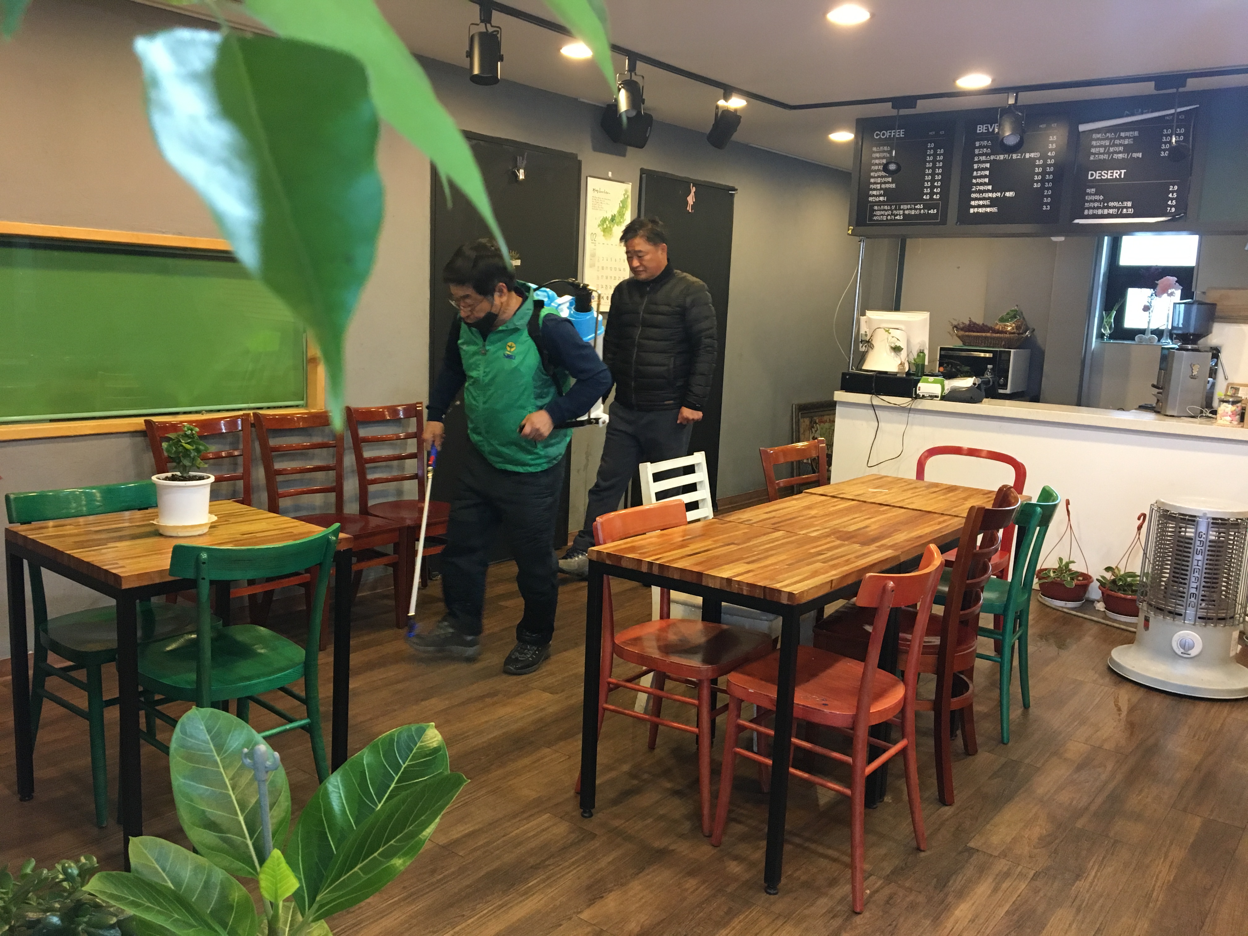 목욜에 주민센터에 부탁해서 건물 전체 방역 소독한 뒤 방문객 출입을 금지시켰다