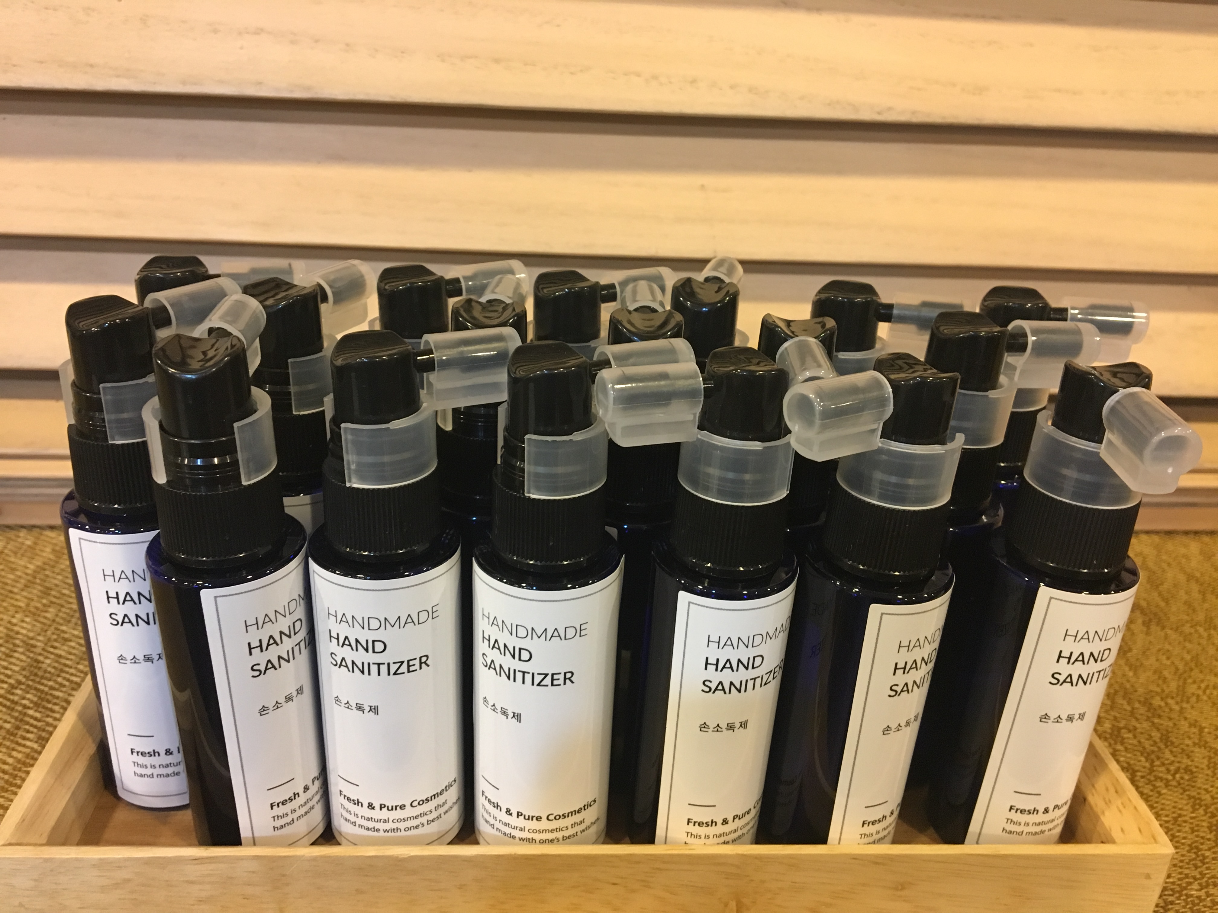 주머니에 들어갈 만한 크기로 뿌리는 손소독제를 만들어 오시는 분들께 나눌 예정이다